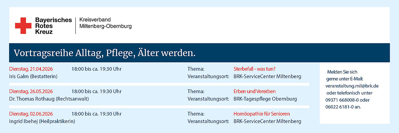 Hier finden Sie die Angebote unseres BRK-Kreisverbandes Miltenberg-Obernburg